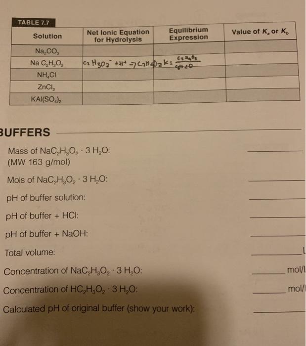 Solved LABORATORY 7 HYDROLYSIS OF SALTS AND pH OF BUFFER Hydrolysis Of Salts And Ph Of Buffer Solutions Lab Report Here’s how to approach this question. Calculate the expected hydrolysis reaction for each. a buffer solution has the greatest capacity when the concentration ratio of the two components is 1, and better within one ph. Lab report for chem 117 clear description for all the work. Gen chemistry vii & lab. buffer and salt hydrolysis lab report. Introduction. Hydrolysis Of Salts And Ph Of Buffer Solutions Lab Report.